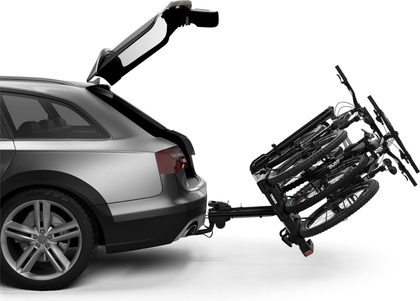 • Le Thule EasyFold XT F Fix4Bike transporte jusqu’à 3 vélos, y compris les e-bikes, avec une fixation sécurisée et un accès facile au coffre grâce à son mécanisme d’inclinaison.